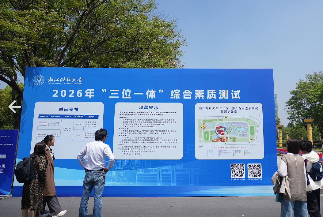 4月19日,学校2026年“三位一体”综合素质测试在下沙校区顺利举行。浙江省教育考试院薛玉刚来校巡查指导工作,校长、党委副书记陈衍泰,党委副书记徐晓东,党委委员、副校长董进才等陪同,并与现场工作人员及考生亲切交流。学校高度重视本次测试工作,召开党委会审定方案,从顶层设计上加强组织领导。各相关职能部门密切配合,在统筹协调、纪律监督、技术支持、物资保障、后勤服务、考试实施等环节上提供了有力支撑。 为持续提...